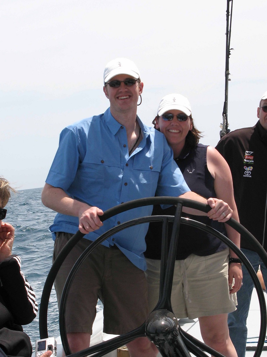 Just over a week following graduation, Kris and I boarded our flight from Gunnison to Spain for our honeymoon where we enjoyed watching the semi final races of the Louis Vuitton Cup (challenger’s series of the America’s Cup). See the website pics. What an amazing experience. Neither of us had been to Europe so everything was new. We explored extensively, the base area which had lots of activities and entertainment. We also went out to see two days races first hand on spectator boats. And the grand experience was to sail on the America’s Cup Experience boat for a half day. This is a 2001 Great Britain challenger’s boat that is lead by a few experienced crewmembers and allows sailing fans the chance to sail on the real thing, hoisting sails, trimming, grinding, and doing all the normal activities on a race boat, even having a turn at the helm. We sailed along side the actual race course and made a couple passes by the starting “box” just as the day’s races were starting. It doesn’t get much better for a sailor!image