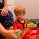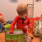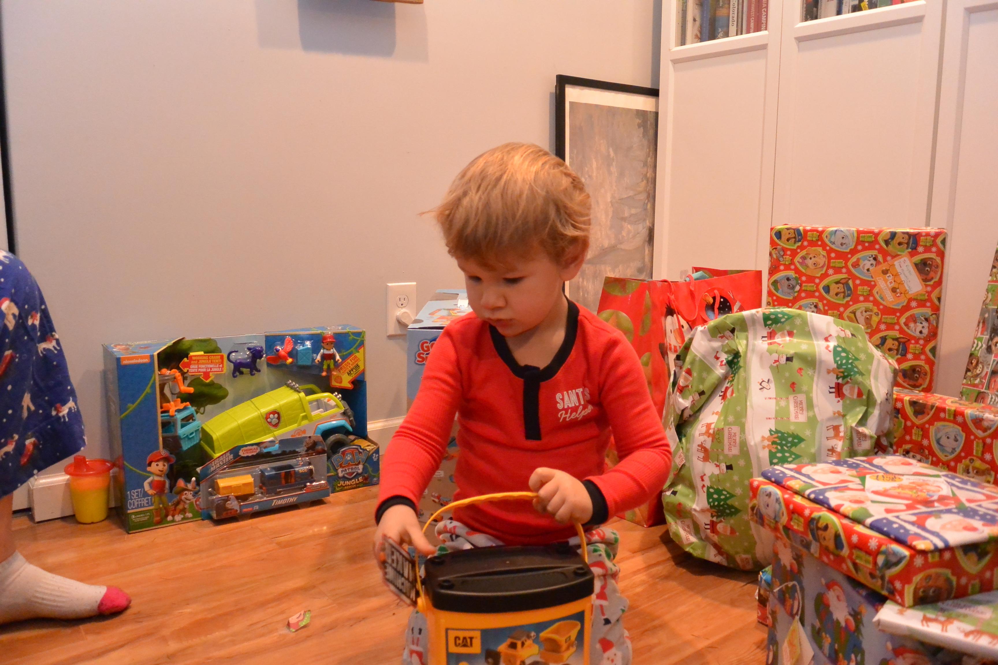 Unfortunately, we had to whisk him away from his loot for breakfast and then the trip to the Finley’s yet again, for round 2 where another mountain of goodies awaited. He now had the unwrapping thing down, bypassing the clothing and other non toys like soda at a frat party.