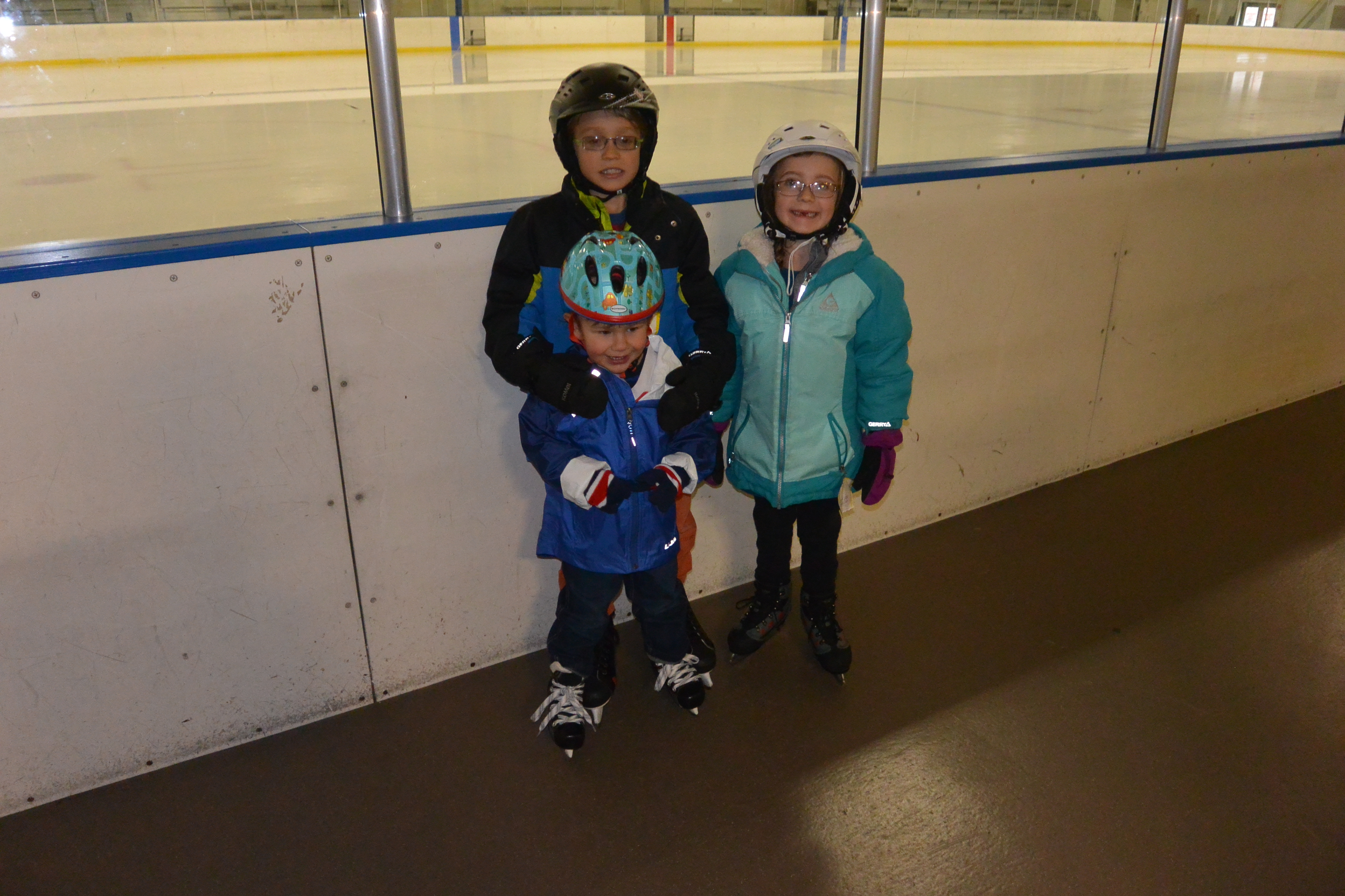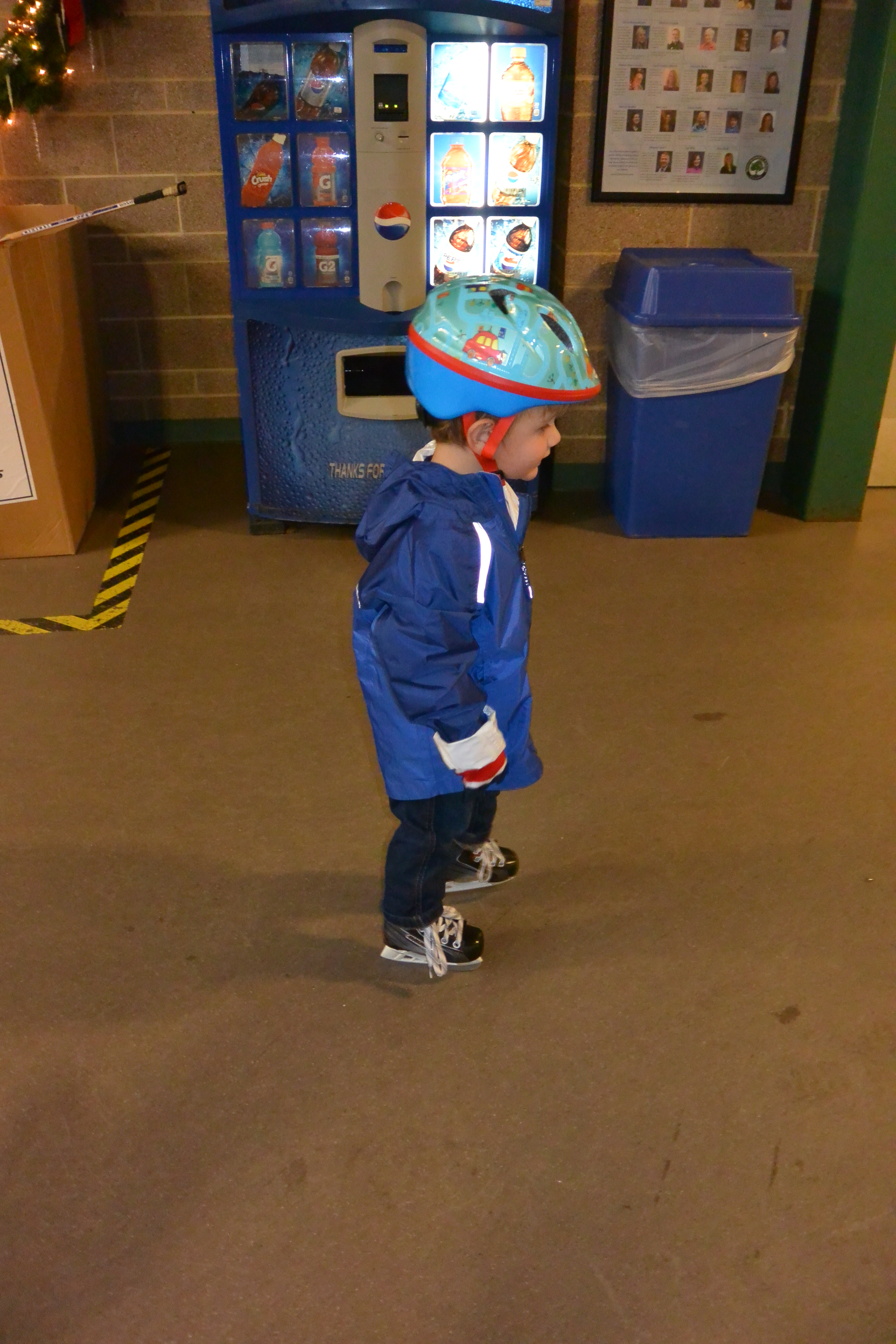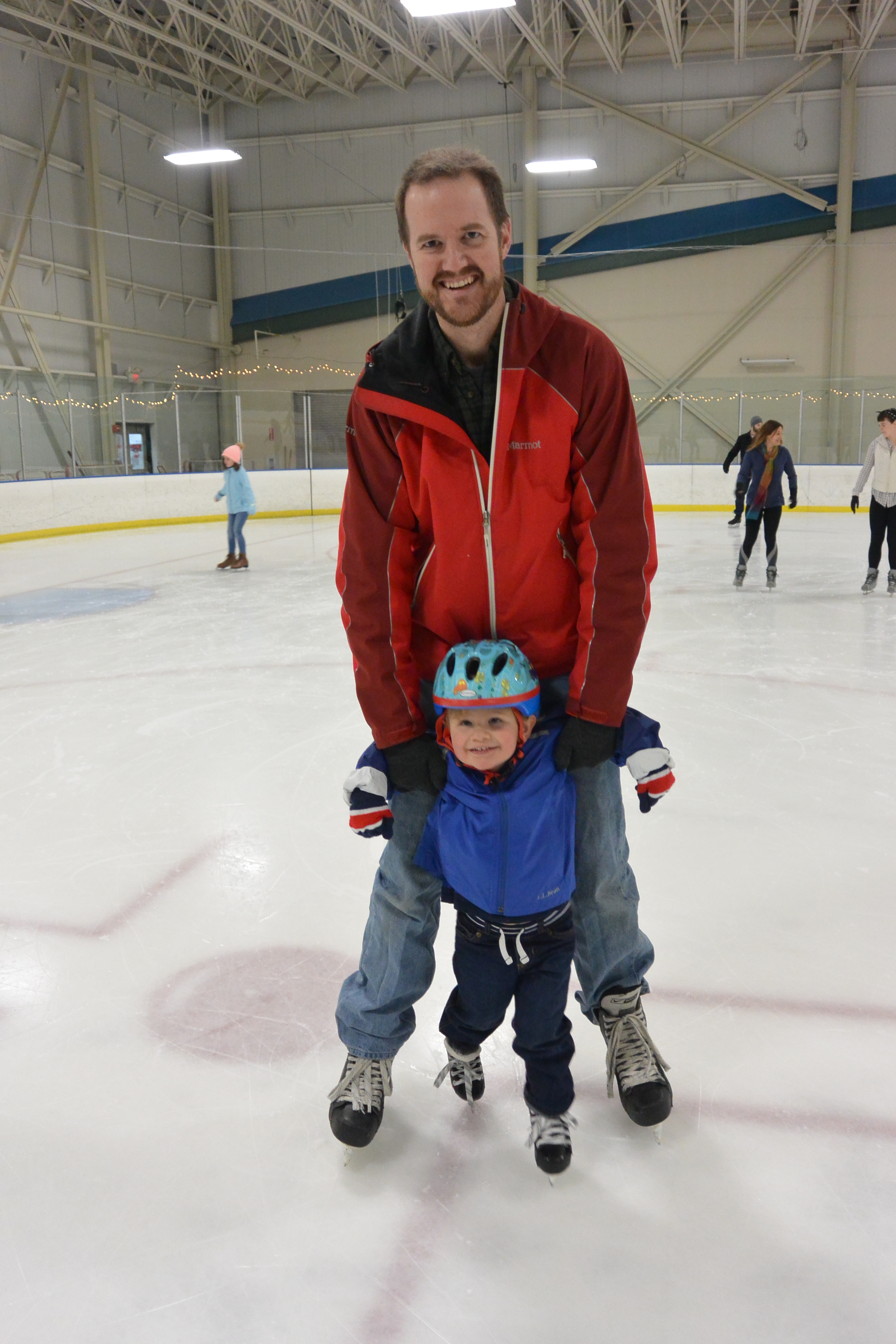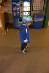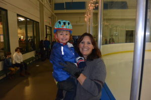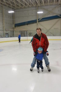 While his first pair of skates still fit (which will only be another month or two) the holiday season was the perfect time for Ryder to get out on the ice. He had been walking around in skates at home with guards over the blades, so at least he could get the sensation of the narrow foot print, but he had only touched the ice one other time. So a few days after Christmas, we got our gear together and rendezvoused with Fritz, Grandma and cousins, Graeme and Vivien at the Cabin John Ice Rink for some open skating. Ryder’s was excited and confident up until he actually stepped out on the rink and realized how little control he had. he was hysterical and we had a great time!