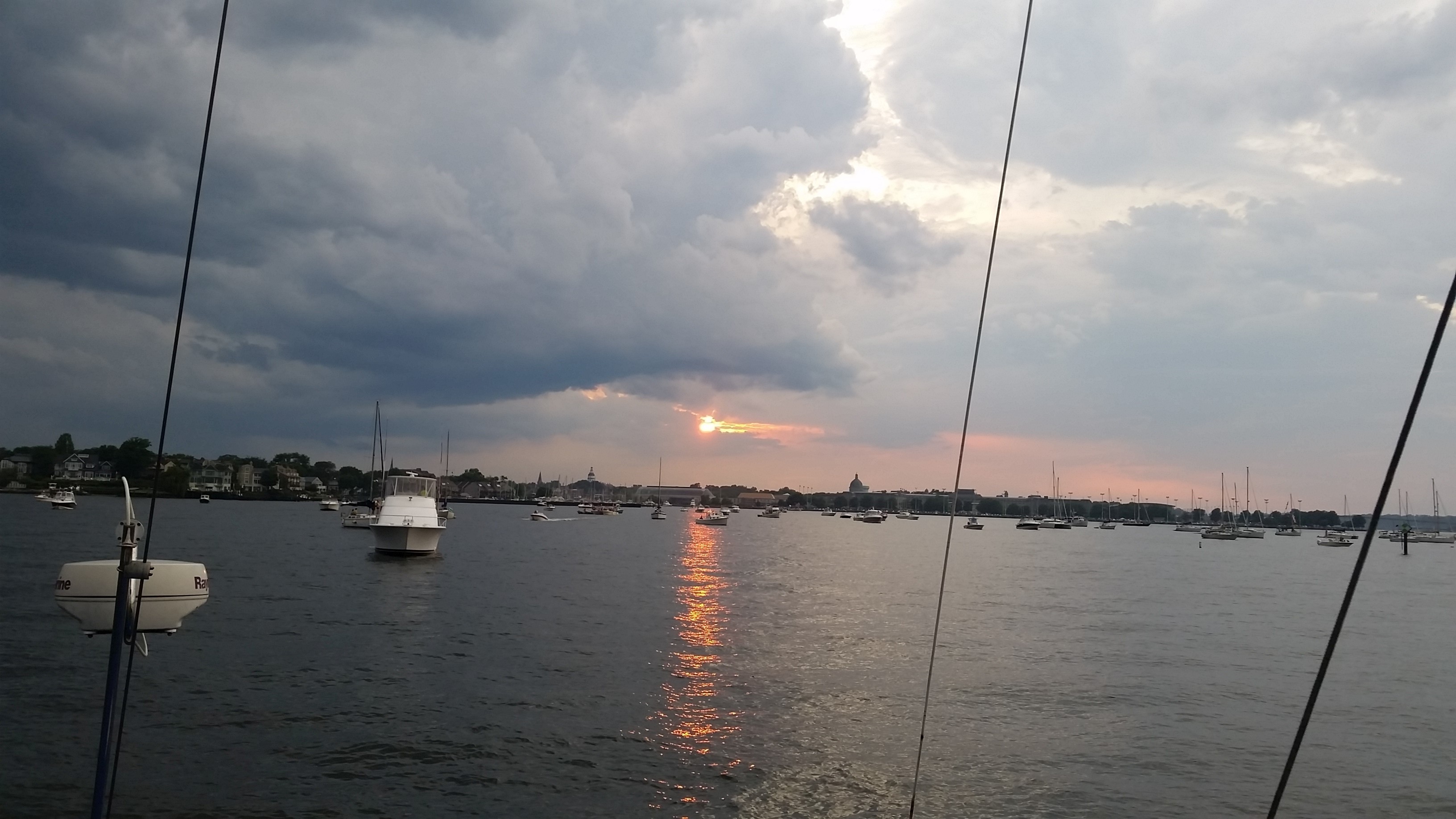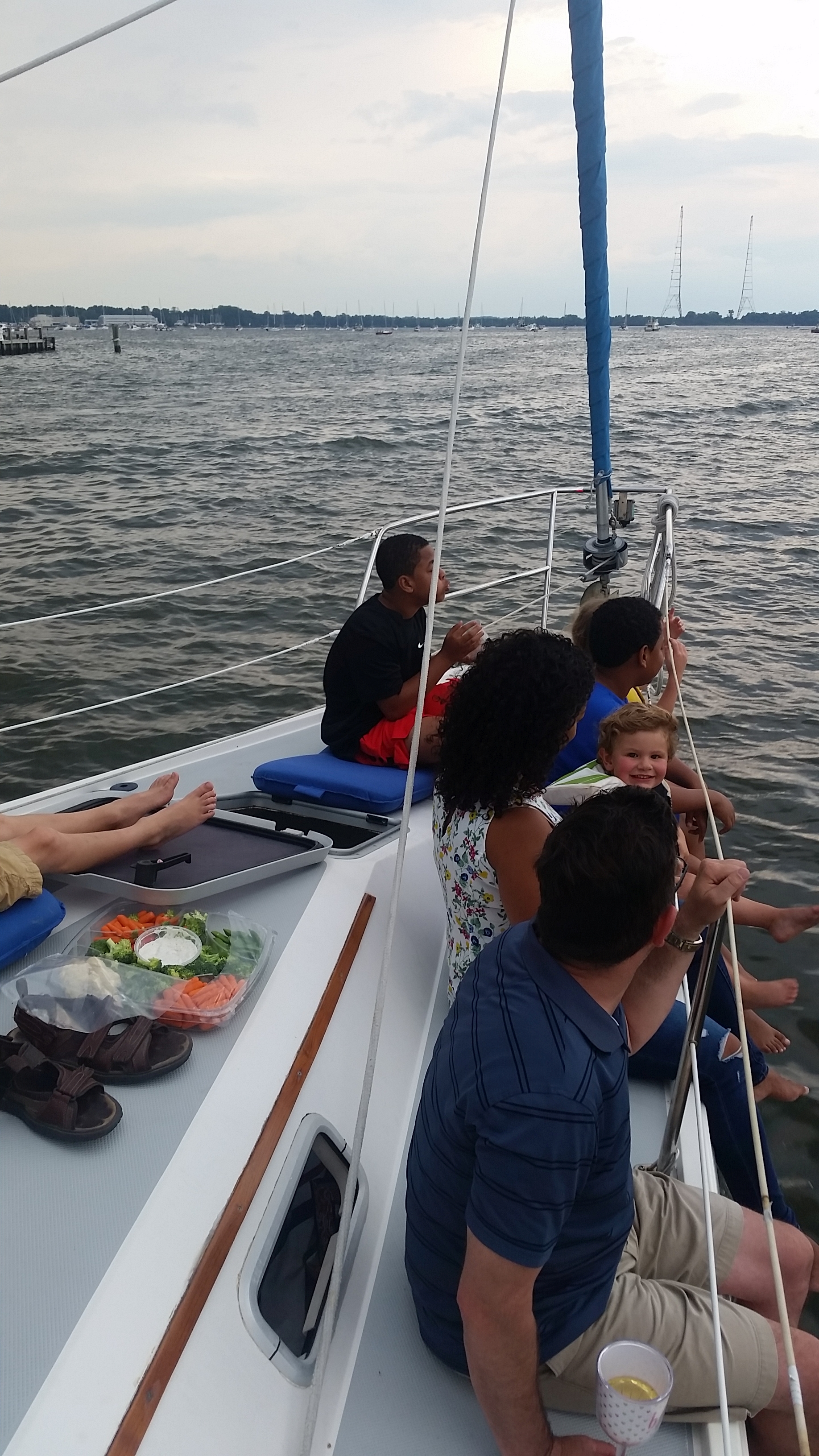 I had Ryder by myself with the extended fam on the 4th on the family boat at anchor just off the Annapolis shore. It was hot, then it rained so we all went below where it got even hotter and steamier in the un-ventilated and confined space only to have the fireworks canceled due to weather (ugh). Ry was great until the last hour or so… past his bedtime and well past his patience level. We rolled into the drive way a little before 10:30, the dogs beyond anxious to be let outside after such a long confinement, Ryder’s eyes shut before his head hit his pillow.