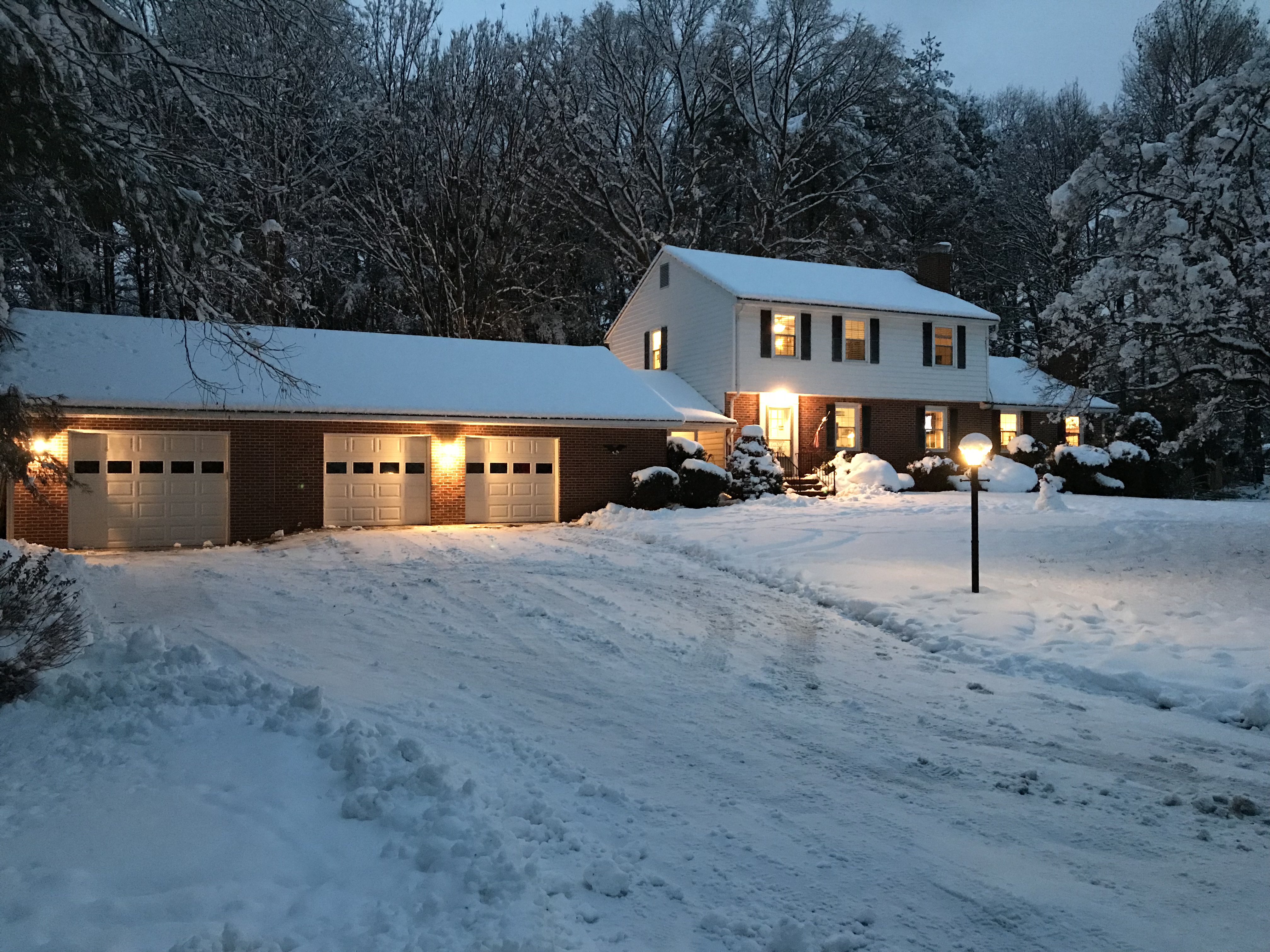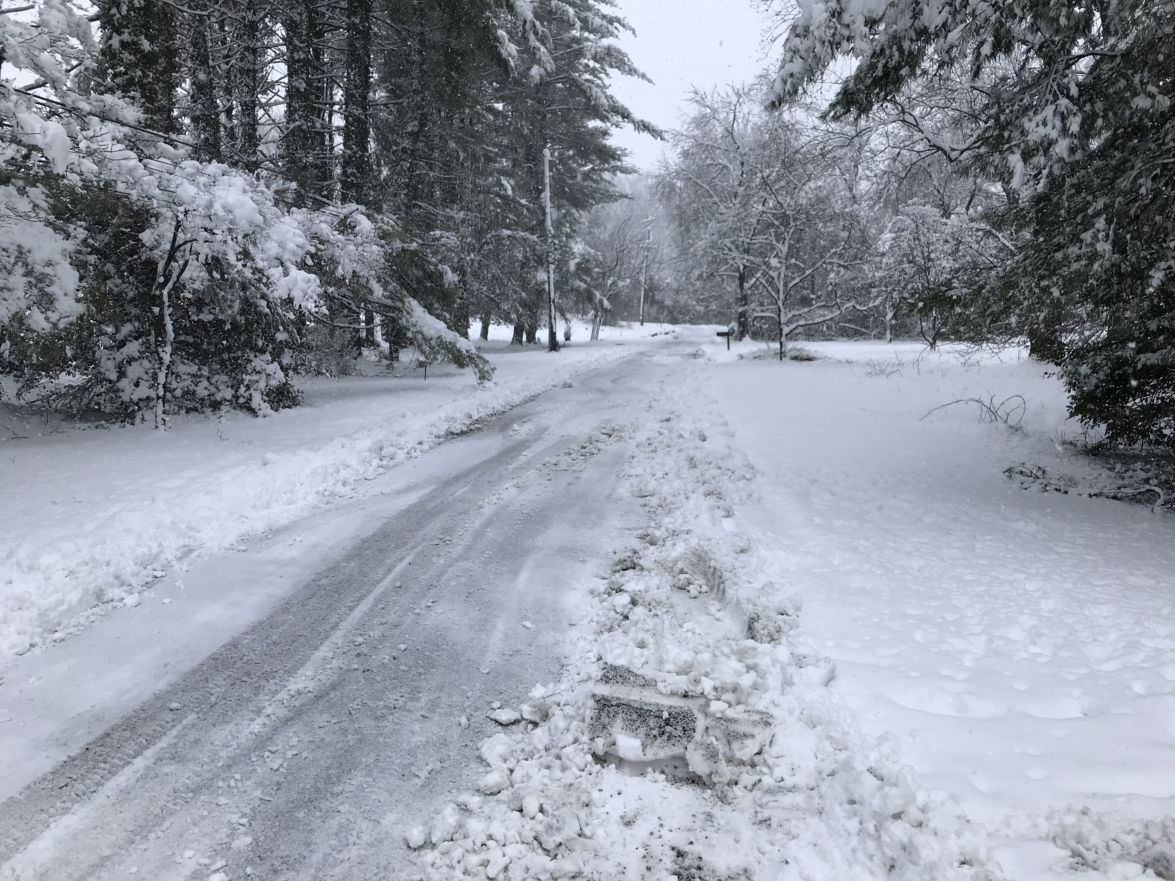 By noon I had plowed the driveway and road with the tractor which I had been itching to do for some time. I would have to do it once more around 5 as the inches piled up. It slowed shortly after that and our property was dressed in her dress whites.