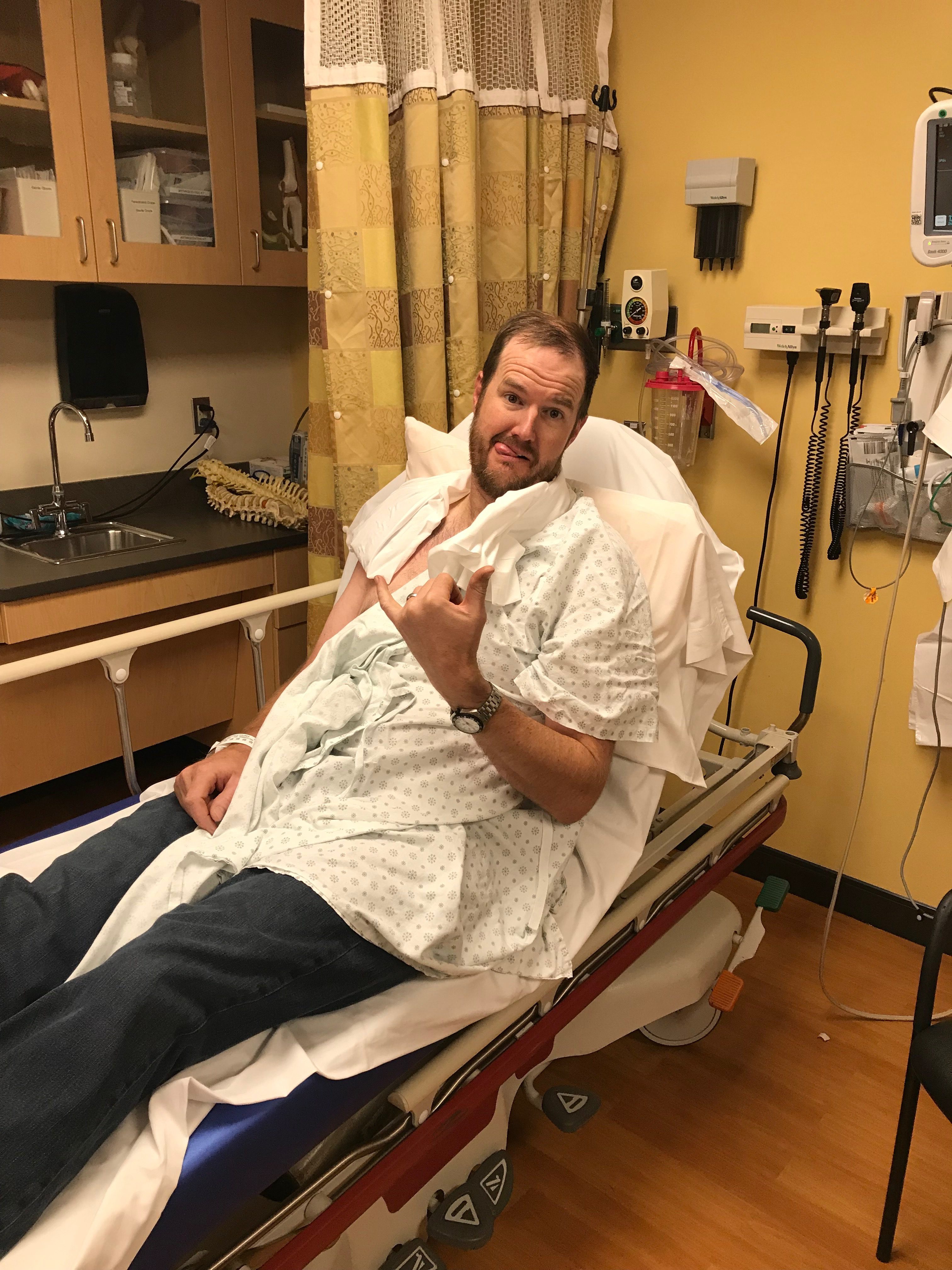 Check in, X-rays, pain meds. “It appears you have what is called a pneumothorax which is when a rupture occurs in your lung and air escapes into your chest cavity allowing your lung to deflate. You have a collapsed lung.”