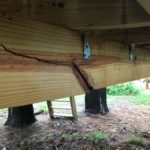 Just a couple days to go before Ryder’s birthday party and I discovered that the tree that hit the tree house did more damage than I had previously thought. It broke one of the primary support members right in the middle which completely compromised the stability of the platform. I had to fix this before all the kids this weekend would pile on to it.