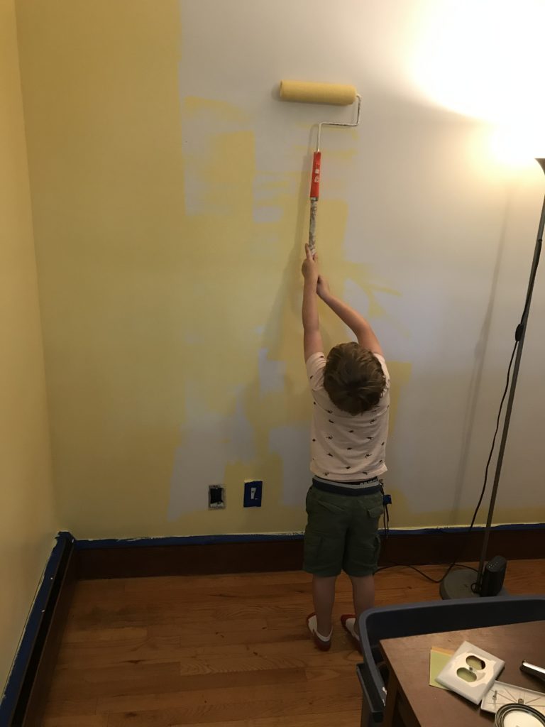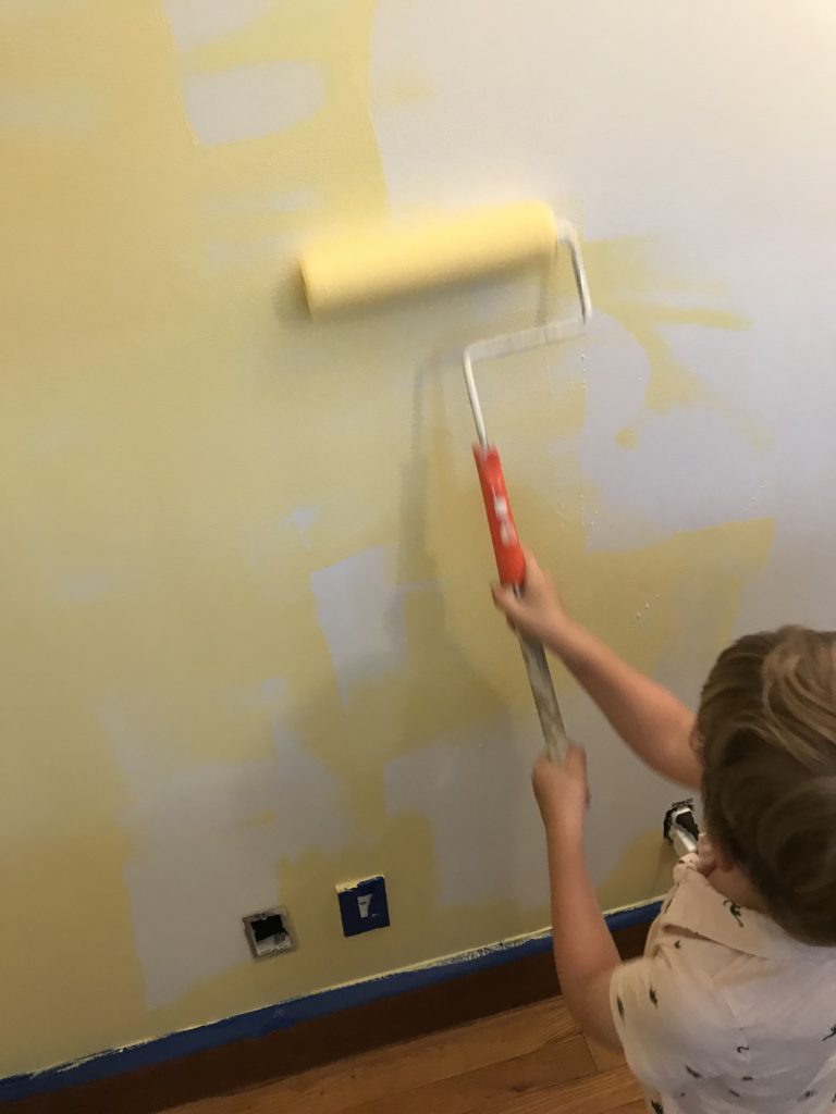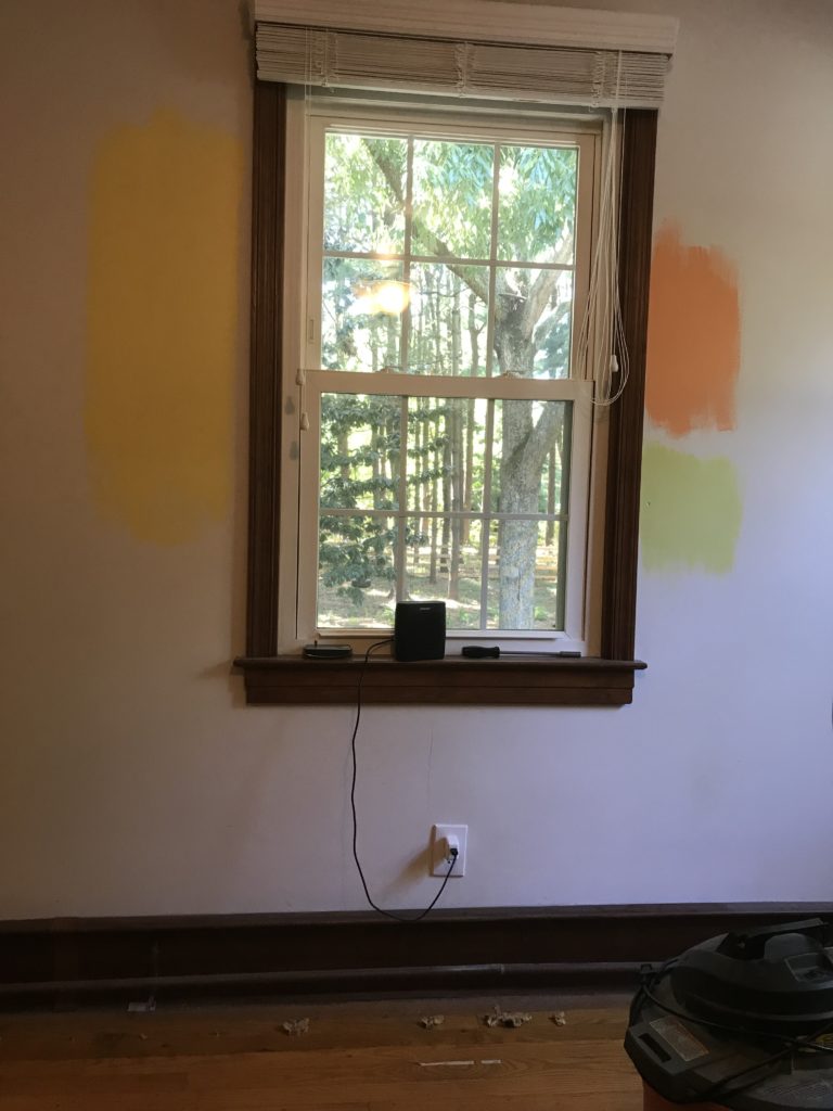 When I imagine people deciding a color for a room, I imagine swatches painted on the wall in different shades, but mostly of the same color. Well, Not this time… not for us. We struggled finding a color we both like for the baby’s room and as a result, we had color all over the map: Blues (we actually wanted to stay away from blue since it was dominant in the house already including Ryder’s room), yellow, greens, beiges and more. I think had someone wandered in during this process, they would have definitely thought we were color blind.
