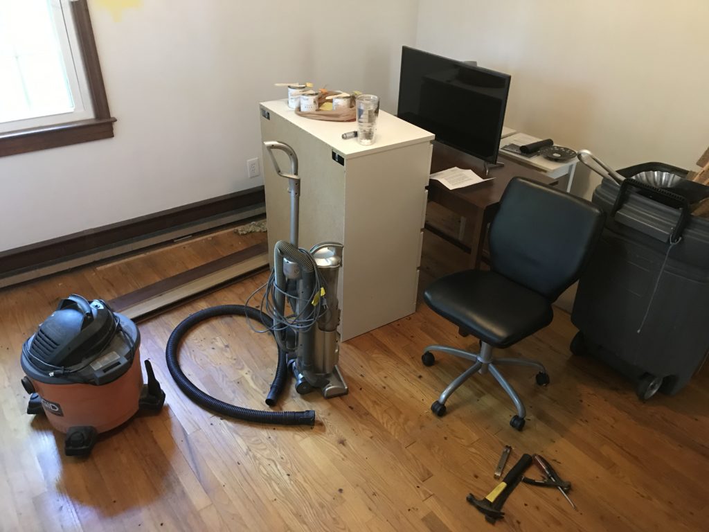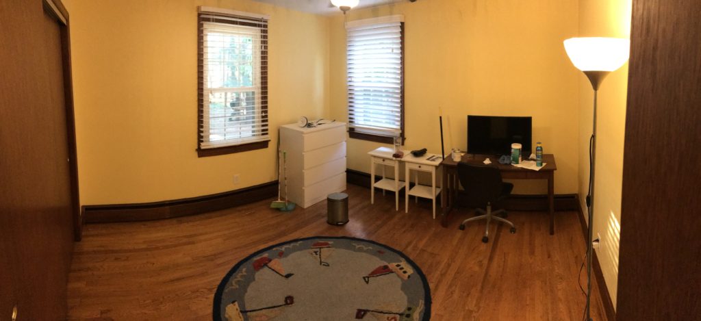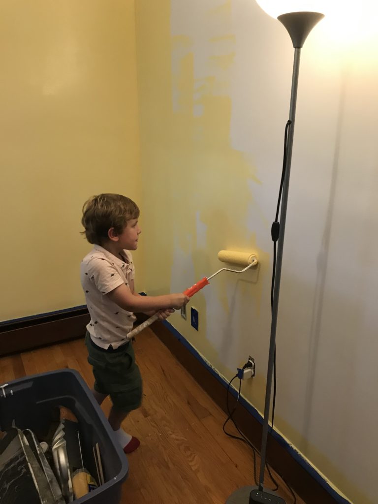 We tore up the room Tom was using a week after he left and dug in to painting it and getting it ready for our new little one. In the end, we went with a soft yellow. It looks a little darker than we thought it would, but it looks very classic with the stained trim and wood floors. Next up is getting the crib built and finding the rest of the furniture.