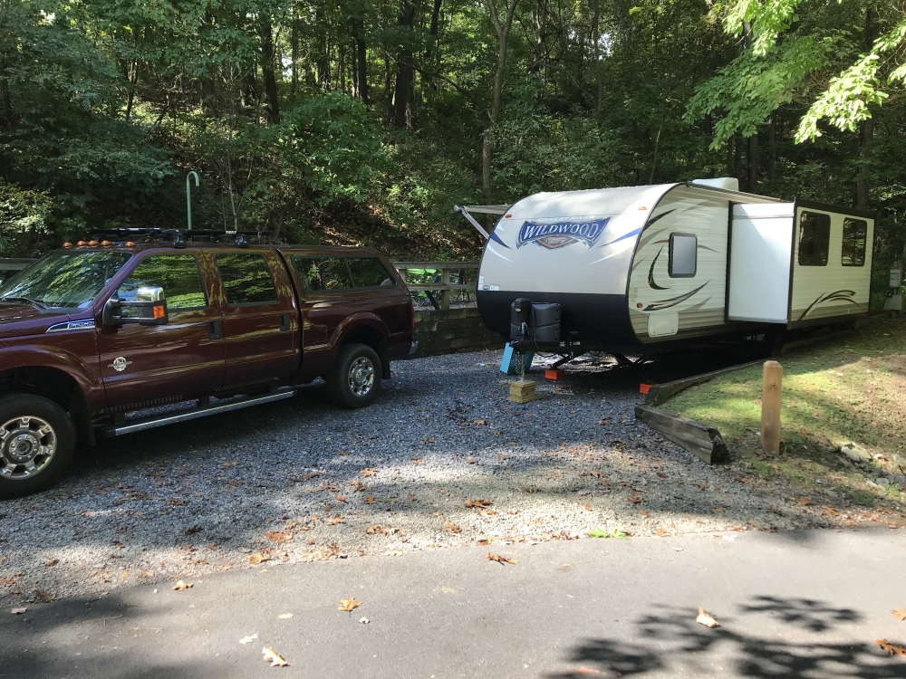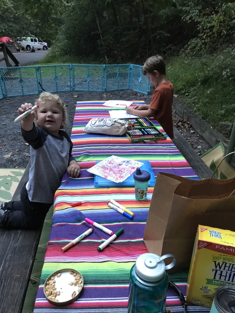 What a great find…. Seven Points Campground is huge but it sure doesn’t feel like it. We made a trip a few hours away for the Columbus Day holiday and were ecstatic over our decision. There was only one remaining site when we made our reservations, but thankfully the photos were pretty good so we knew what we were in for. This was our first night time arrival, which we had been trying to avoid, but as the days get shorter, its almost a sure things that it will happen if we are leaving after Ryder gets home from school.