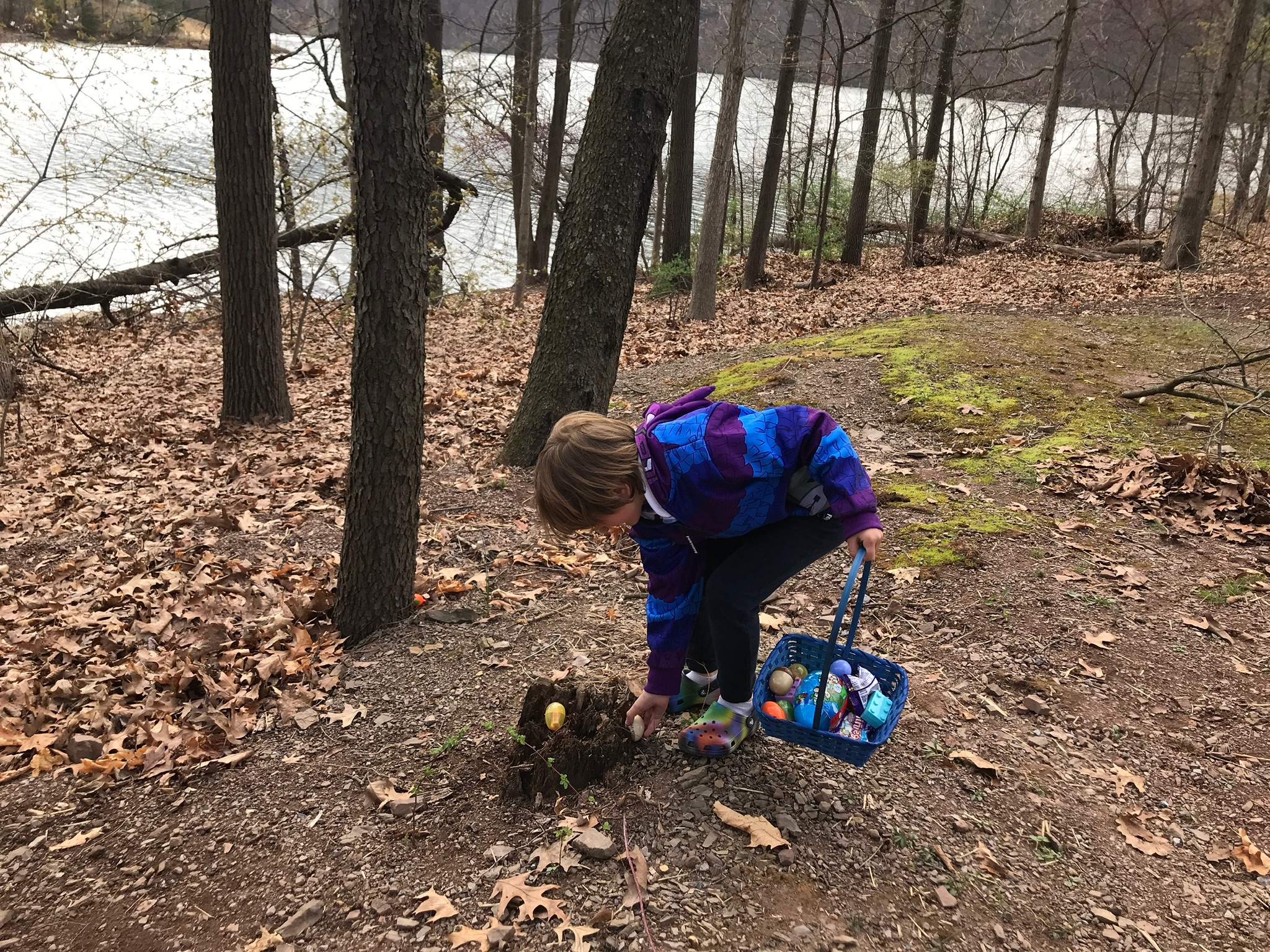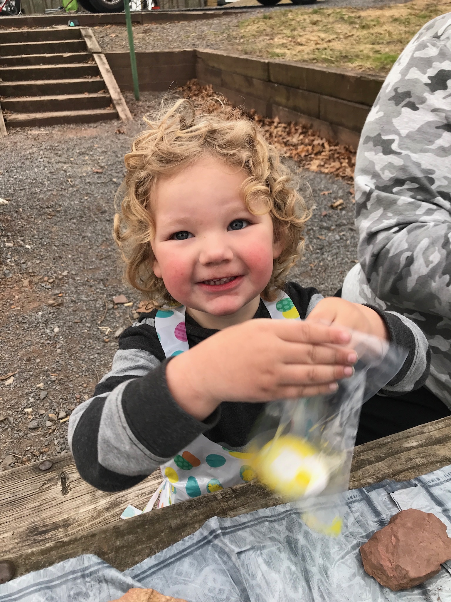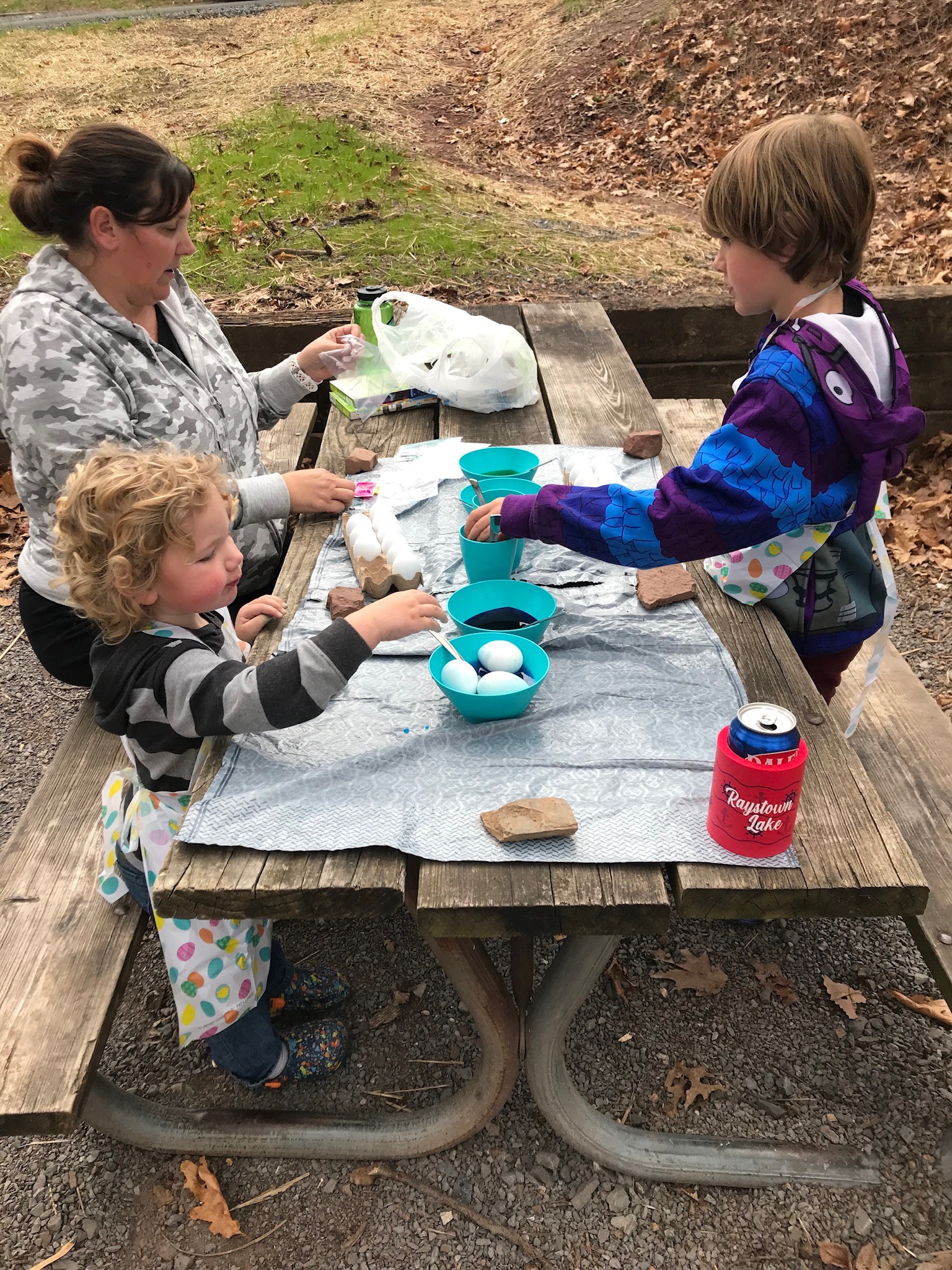 Let’s not forget that it was Easter weekend and even though Sunday got off to a cold and rainy start (mixed with some snow flurries), we decorated eggs (Saturday) and had our egg hunt once things warmed up a bit. This was our second Easter camping but the first with Ethan really on the go and searching for his eggs. Both boys had a great time and I’m hoping we can return in the fall which is not only our favorite time of year to camp, but also to ride.
