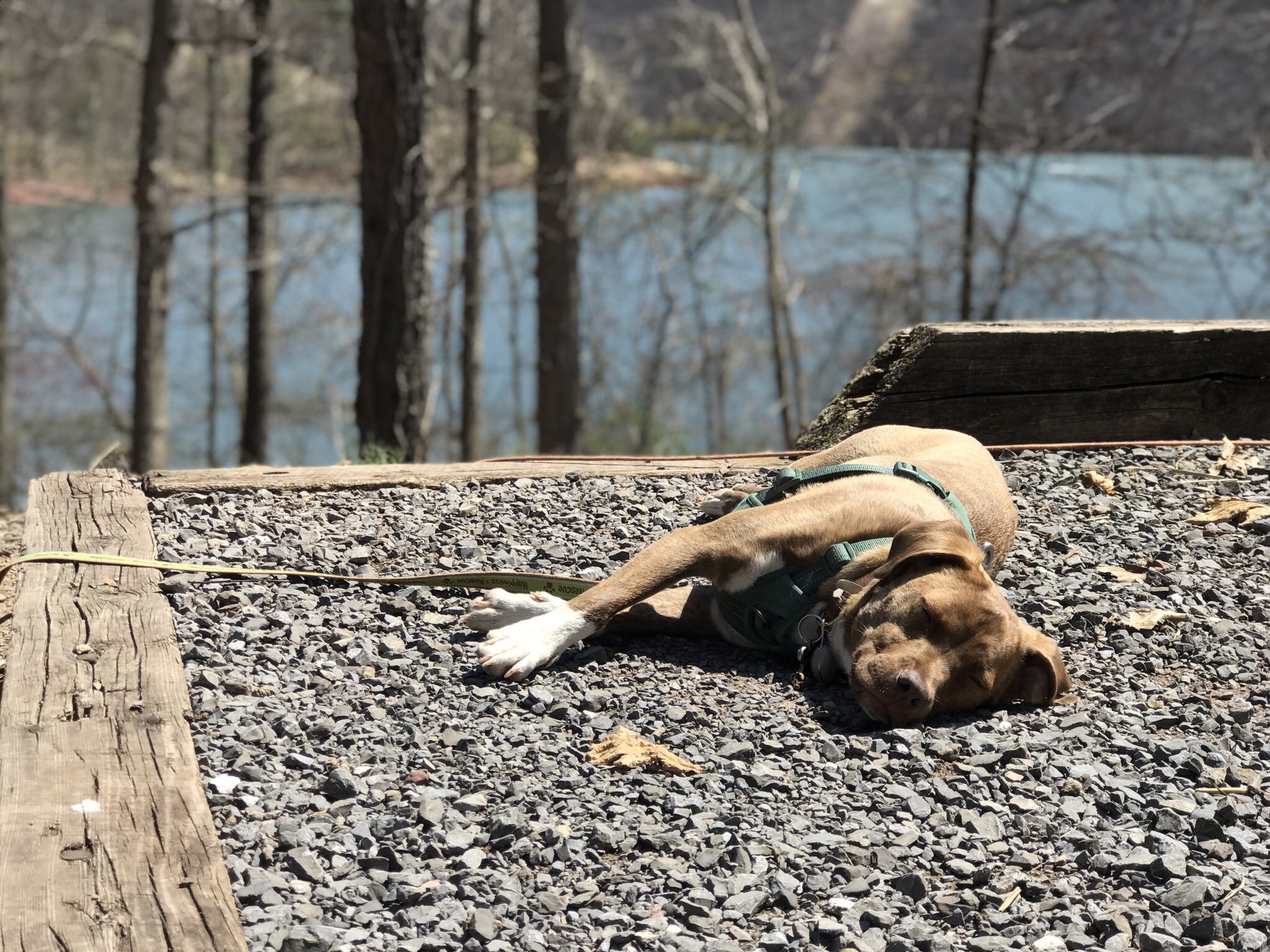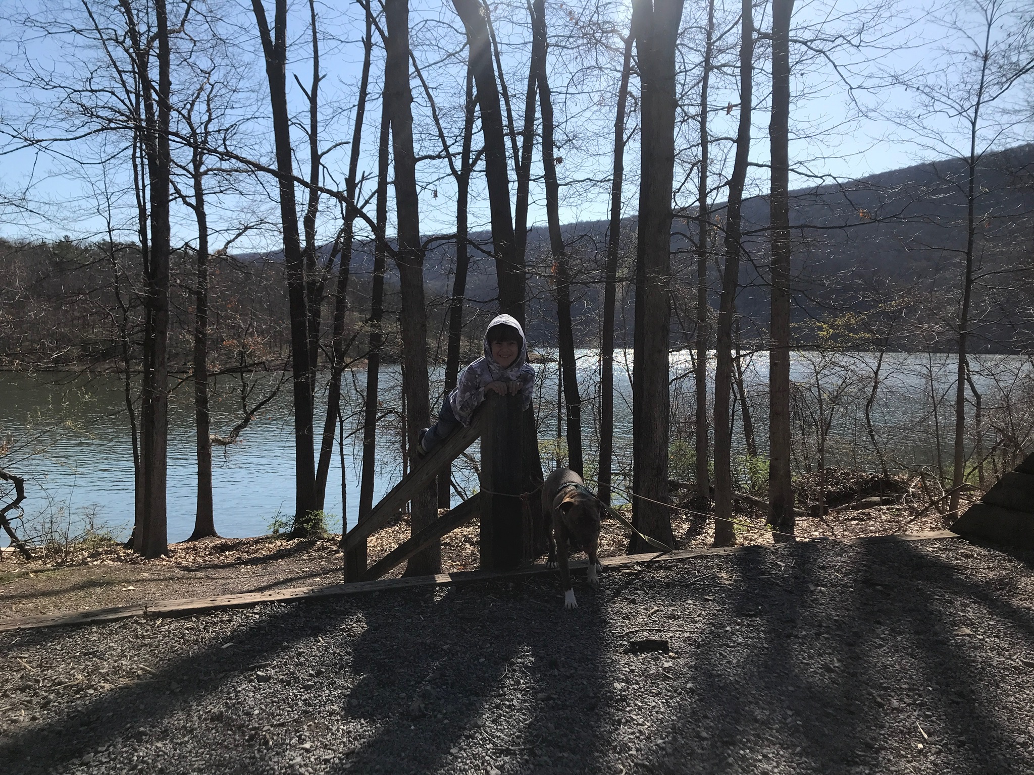 So naturally while we were there in October we scouted the whole campground (actually 5 separate loops) to find areas we preferred and set a return date for Ryder’s Easter Break which fell in mid April. This time around we stayed in the Point Camp which is set on an idyllic peninsula with either lake views or waterfront sites nearly all the way around the loop. We found a great waterfront spot above the lake although access to the water was down a somewhat steep embankment. Talley took up most of the length of the pad so we had to park the truck alongside, but that was no issue since our site was probably 150 feet wide. Our picnic table and fire ring were down a level and had a private view of the lake. it was spectacular.